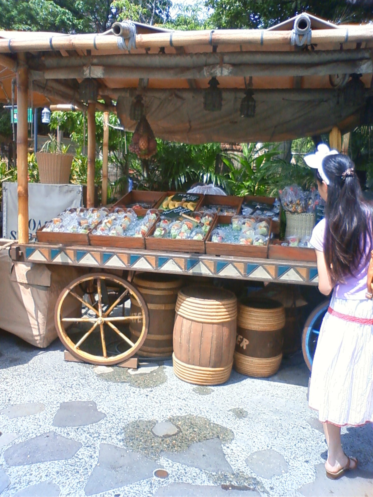 今回は食べなかったけど、冬にはみないワゴンがジャングルクルーズの辺りに出店していて、カップ入フルーツ出してます。