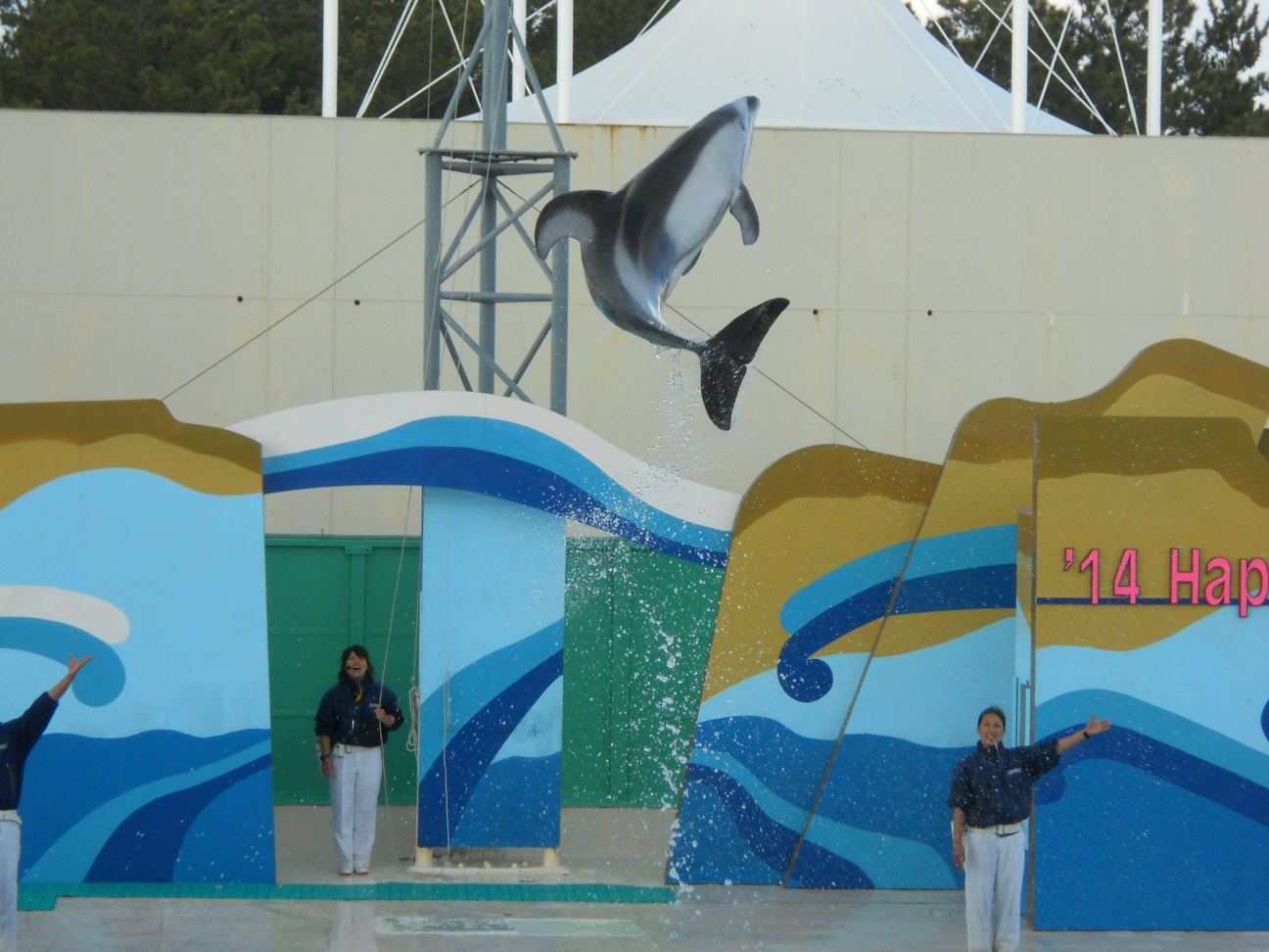 前の方の席は、しぶきが豪快に飛ぶショー。楽しいよ~~~ん。