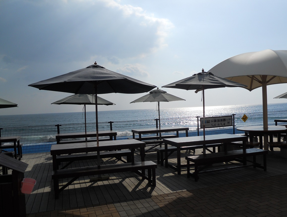 海辺の休憩スペース。お弁当はここで。(でも風強い)