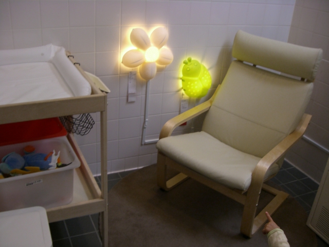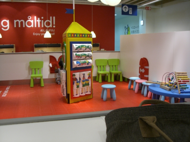 ここでは、子供たちがうじゃうじゃと、ミニサイズのソファに腰掛けたり、かわいいスタンドをつけたり消したり、滑り台をすべってみたりと盛り上がっております。でもここだけなんだよな~。子供の気を引けるとこ。ここでやっと、ほっとできる親たち。