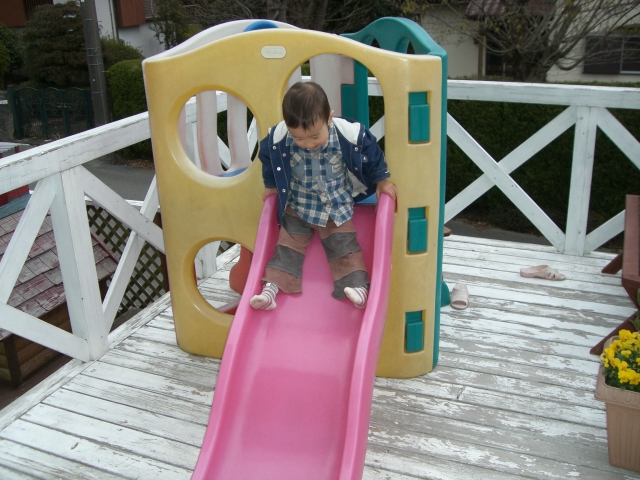 露天の方には、子供用の滑り台も設置されていて、シャイな長男もチャレンジしておりました。