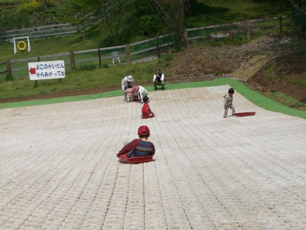 あいかわらず未就学児も十分満喫できる広さ。前回びびっていた息子も今回はまってたのが、そり。