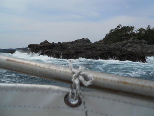 最大の名所「穴通磯」まで、ボートを飛ばす飛ばす!!