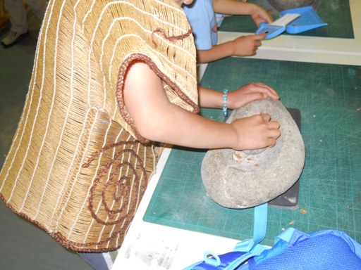 縄文人は木の実を料理したということで、石器でどんぐりを粉にできるコーナーが。